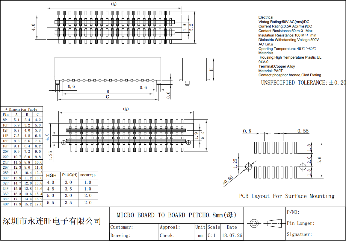 Specification:0.80mm Board to Board Female